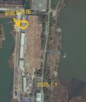 An estimate on GE of eyeballing the flight deck width, based on the extended flight deck width on the starboard side, which looks like it is "in line" with the building near that intersection (circled red).