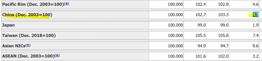 Despite this, US import price from China increased by 4.7%. Also US import price from the far east region (including China input) increased by 3.2 - 9.6 %.
