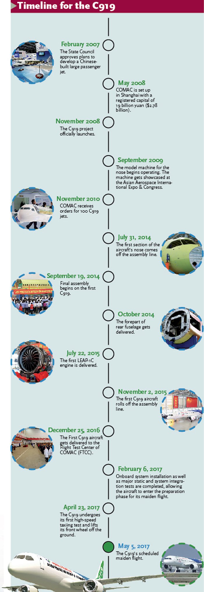 From the time the State Council, China's cabinet, decided to develop the aircraft in 2007 until the inaugural flight, it has taken Commercial Aircraft Corp of China (COMAC) 10 years to make the passenger jet a reality.