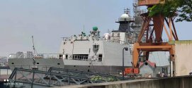 The rear shot is important. But due to the bars of the bridge obstructing the view, its hard to be certain that the opening in the rear might be for a VDS. If that is a VDS, then that's a sizable upgrade and positions the ship for an ASW function.