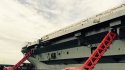 This is an excellent video of USS Carl Vinson (CVN 70) strike group practicing a transit through possibly the Straits of Hormuz. Note the positioning of the aircraft on the flight deck . They are poised to conduct air operations as necessary. Also notice the small craft with red flags swarming near CVN-70. Great overhead shots of Carl Vinson.
