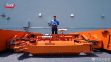 A new compact tow tractor for carrier-based aircraft. It features a 'rod-less' design. Compared to existing tow tractors that connects to an aircraft using a tow rod (2nd image), this new tractor locks onto an aircraft by its nose gear via a locking mechanism built directly into the tractor's body, thereby saving space and greatly reducing turning circle. This is expected to increase aircraft dispatch rate.
